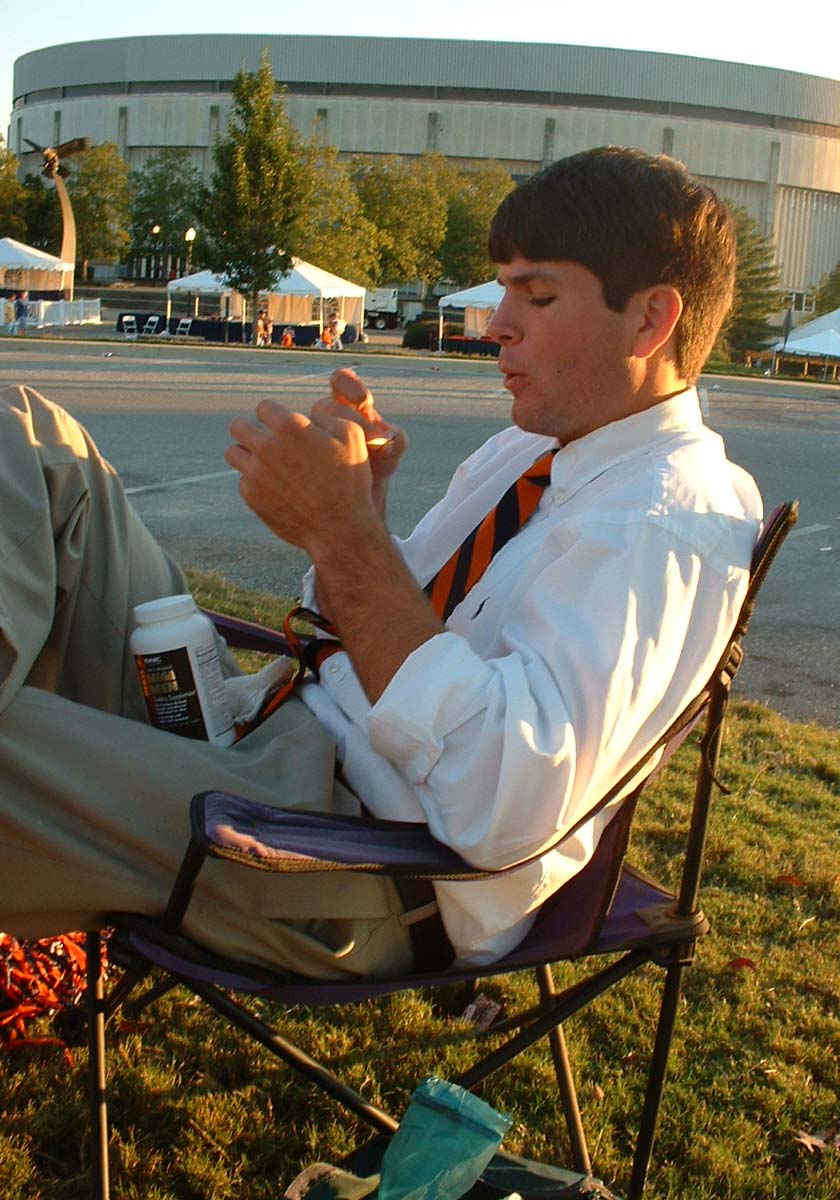Bryan recites a frat pledge to a match. Kids today. This is what they're