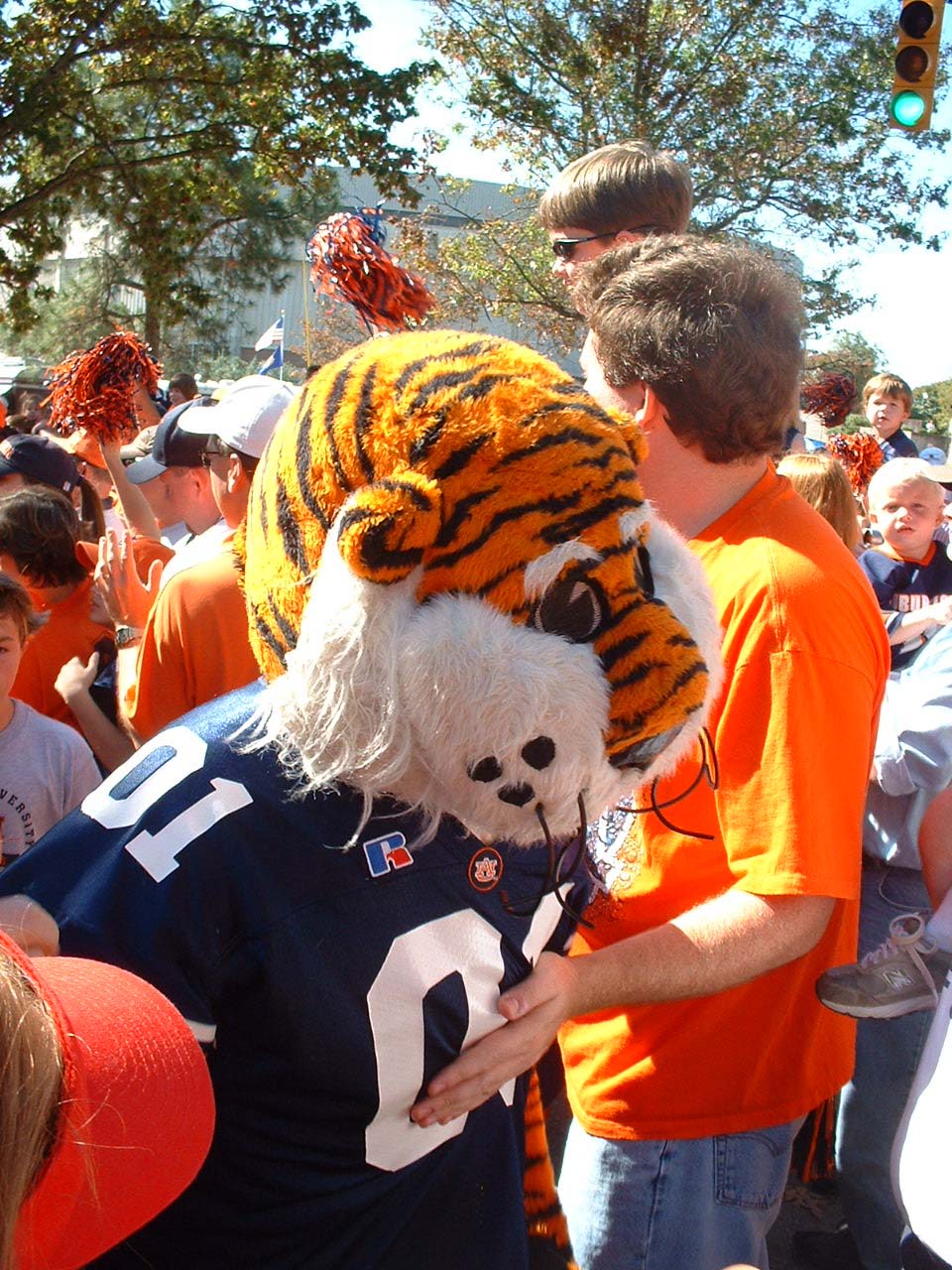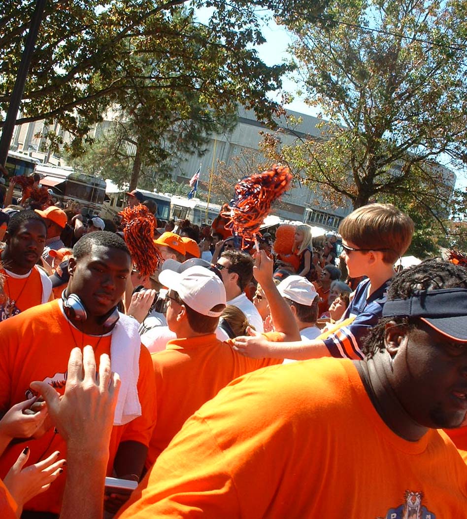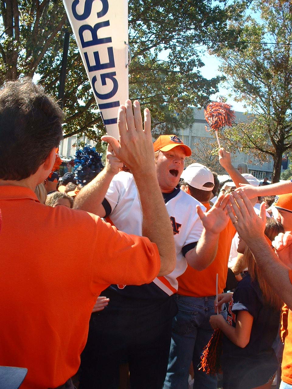 Aubie high-5's the crowd.