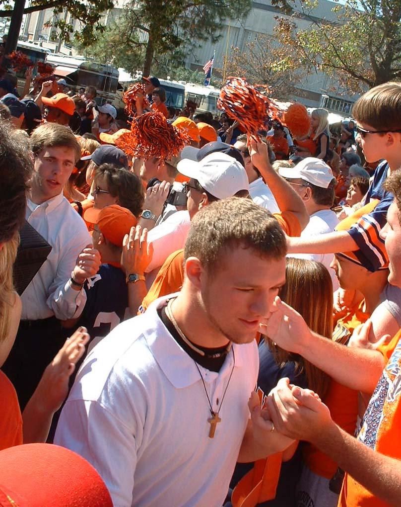 Coach T tries to slink through the crowd unnoticed. After the LSU