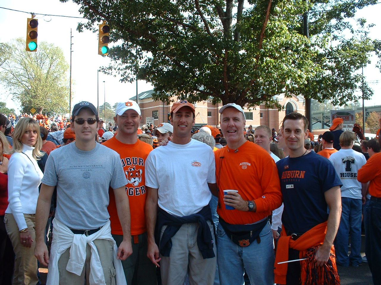 Ready for Tiger Walk. Michael, Stu, Jonathan, Lee and Cheerleader Andy.