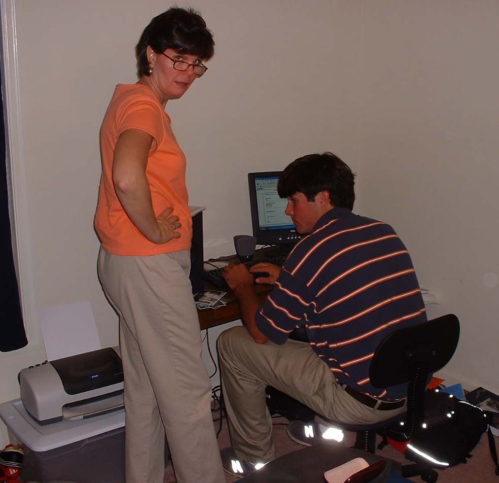 Patti checks out Bryan's internet surfing. "No really, mom, www.buxomcoeds.com was for a psychology paper!"