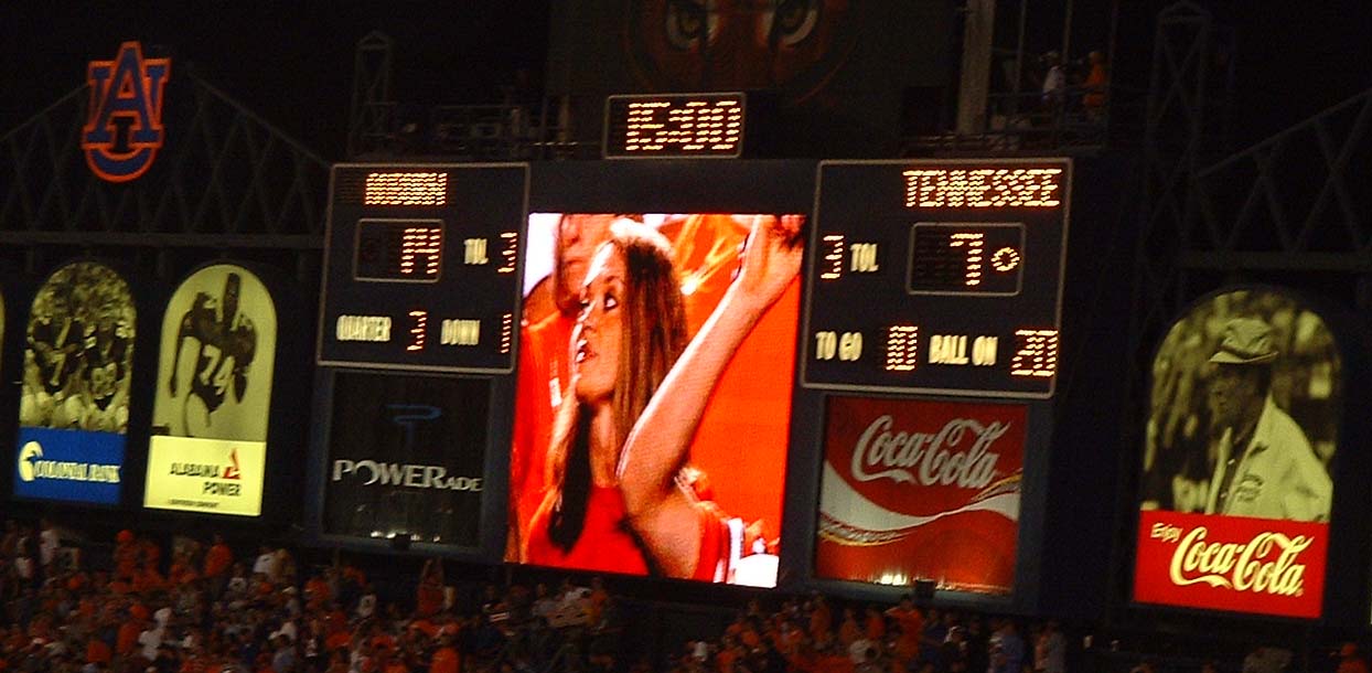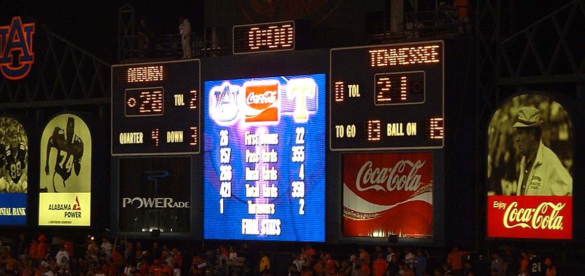 The scoreboard at halftime. Uh,... is that a typo? Shouldn't it be AU-21??? The refs need glasses.