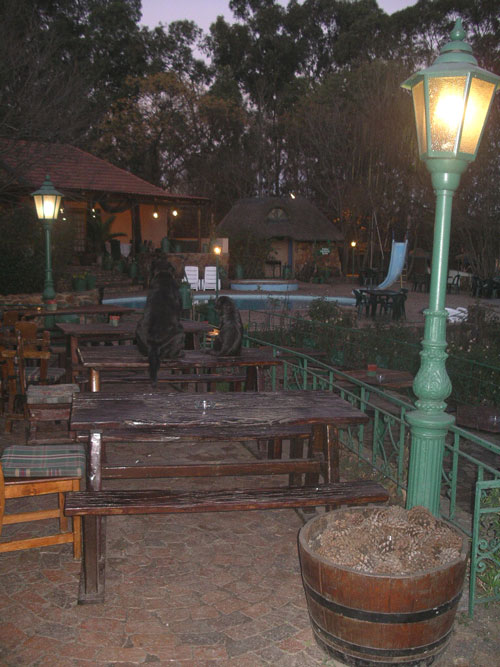 The food here is delicious, probably too delicious! And being able to just order from the restaurant whenever and whatever I want is going to make me fat and lazy if I dont watch it (not to mention the wine. The ever-flowing wine!). They have a lot of beef dishes, so I usually have a steak or hamburger. Steak with a fried egg on top of it is pretty good. My arteries are probably choking, so once again, I gotta keep running! Probably my favorite item on the menu is the Curry of the Day. They do a beef, or lamb or chicken curry every day and it is some kinda good. This weekend will be the Afrikaans Potjie (poy-key) Festival, --- potjie seems to be a stew cooked slow and steady with everything in the kitchen thrown in it. The restaurant serves a potjie most days, and its pretty darned good too. At Shagpad last weekend, one of the dishes served was a Biltong pasta. Biltong is like beef jerky, but a lot better, and a very popular local item. But with their heavy accents, they were pronouncing it (and I was hearing it as) Bull Tongue. So yes, I thought I was eating tongue of bull. And in pasta, no less. But hey, they were all excited about it, so I figured I could at least give it a try. When we all finally figured out that what I thought they were saying wasnt what they were saying, they all had a good laugh. And I felt much better about eating the stuff! Ive also had some chicken here, but mostly beef. No fish yet either. The vegetables are pretty good, especially one called butternut that is kind of like squash.