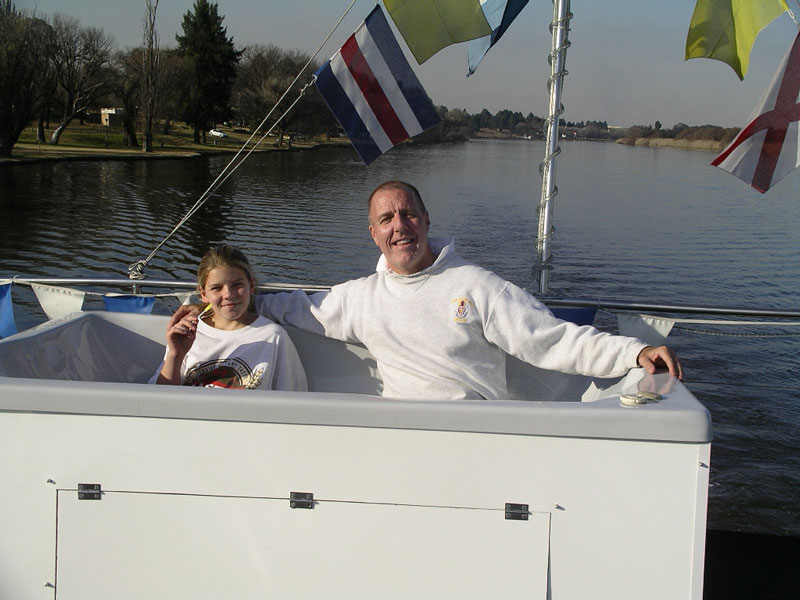 Ive settled into a daily routine here, so Ill take you through a typical day. I wake up about 7am every morning and pop out of bed to turn up the gas heater, turn on the coffeemaker, then climb back under the warm sheets till the coffee is ready. When it is, I get up and pull the curtains back to look out at the front lawn and river, and I bundle up and drink my coffee. The last 2 mornings, the bird baths out my window have been frozen solid. But a cold front just went through and it should be warmer by the weekend. In fact this week Ive seen clouds for the first time. No rain though. While having my coffee and looking at the view, I check email, since I usually have plenty of it first thing in the morning due to time difference between here and the US. (By the way, right now, SA is 6 hours ahead of Atlanta, 7 hours ahead of Alabama. We dont do daylight savings time here, so after you guys switch over in October, Georgia will be 7 hours behind, Alabama 8 hours). I usually eat a bowl of cereal and banana with my coffee and email, and these delicious pure fruit juices that come in boxes that they keep my refrigerator stocked with. This morning I had orange/peach. Yum! Sometimes I surf the web some, to read news from back home, ajc.com, my condos web site message board, al.com, and AuburnTigers.com. I usually just read the headlines of stories, but its keeping me pretty much in touch with whats happening back home. Im on a slow dial-up connection here, unfortunately. High-speed is available, and I will look at getting the business here connected on that when we get back from Botswana. For now though, its slow going.