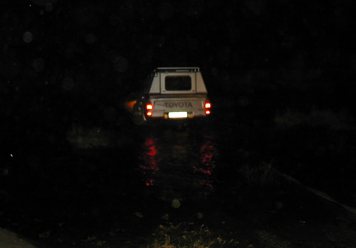 2. Drive further up or down-stream and hope for a better (shallower) crossing, although in such pitch darkness, it was going to be hard to tell anywhere how deep it was.