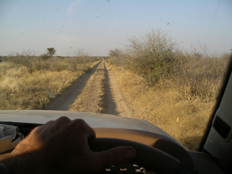 This day had loomed large over our heads the entire trip, in fact, since the itinerary was drawn up. It was to be our longest travel day of the trip, (137 miles) and over questionable roads. The estimate was 11 hours of driving, but we thought that would be a worst-case scenario. It was possible the roads would be better than we thought and we would do it in 5 or 6 hours. The long drive was necessary for us to complete our circumvention of the Okavango Swamps, and driving on that side of the swamps (the east side), there was no way to take short cuts or break the drive up. It had to be straight through. The Andersons and I had talked about leaving the group at this point and back-tracking the way we had come up into the swamp (the west side). We were road-weary and very tired of very bad roads. In the end however, we went ahead with the group for a couple of reasons: one, we had been away from car-travel for 3 days now, on the Mokoros so were a less burned out on road travel, and second, we kept hearing how this stretch of the trip was teeming with wildlife (and it was). So we stuck with the group.