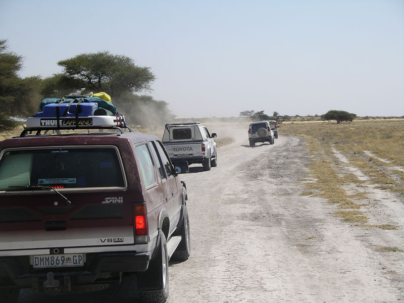 We packed the cars the night before, and got an early start to the day, leaving Seronga just after 7am. The first 43 miles were on decent road and we made great time. We stopped roadside (middle of the road actually) for some breakfast about 9am and were feeling good about the progress we were making. The roads worsened then, but by the time we stopped (mid-road again) for lunch around 1pm, we were over halfway there. We had a great lunch and congratulated ourselves on our progress.