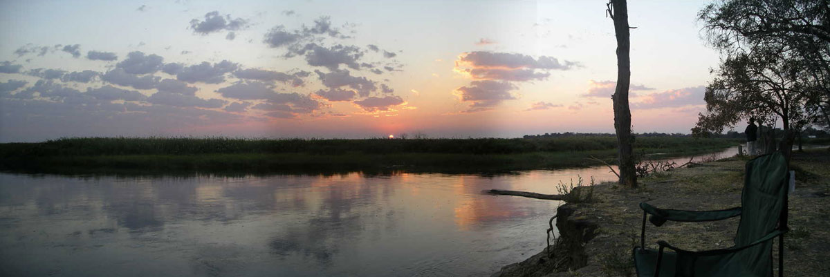 On we trudged. The sun set, darkness began to settle in. We came around one bend and there was an elephant about 15 meters from us off to the side. He was eating happily from a tree, and made good solid eye contact with us, but kept eating and didnt seem interested in charging us (they can get pissed off pretty easily). We rode by some water pools and a river right next to the road. We could see hippo heads poking up and yawning, as they prepared for their exit from the water to the grassy lands we were driving through.