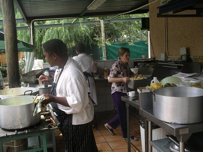 There was actually a car-jacking last week involving a Stonehaven vehicle. Our oldest bakkie (truck) is often used for running errands during the day. 2 of our waitron staff had gone to run some errands, stopped at a red light (robot) and 2 black men jumped into the bakkie and pulled guns. They were made to drive to an ATM and withdraw money, and then they had to drive to a nearby township where the guys jumped out and left them (I think the old bakkie is in such bad shape, the criminals dont even want it!). They both lost their cell phones (cell phones are BIG theft targets here) and about R1700.00, and they were scared to death when they returned to Stonehaven (The guys are only 19). In describing the details of their car jacking, they used the K word a lot (kaffir). But who could blame them, I think.