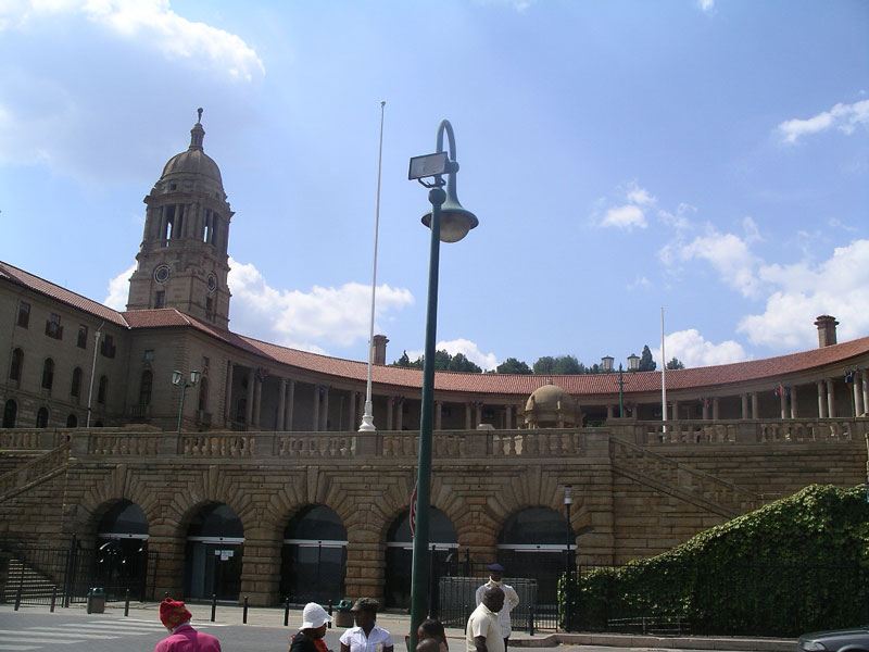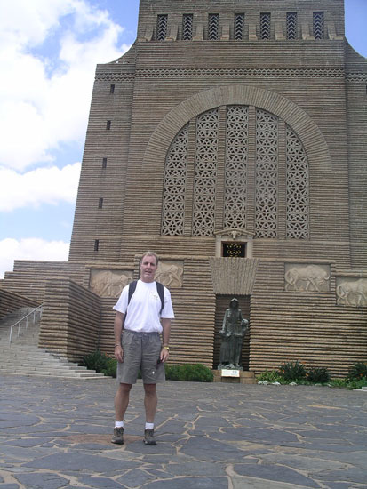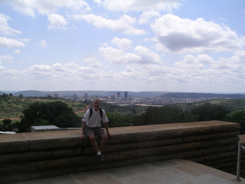 The Andersons (Rex, Rosemary, Storm and Sarah) are still in Cape Town for the long weekend, and John has been in Pretoria with his school Cricket team playing a 3-day something (match, test, tournament, meet, wicket, who knows what its called). So yesterday I drove up to Pretoria to pick him up. I had never been to Pretoria, so used the excuse as a day to be a tourist there. Andrew, one of the managers here, went with me, since he knows Pretoria pretty well, and would know where to take me, to maximize my time there. Pretoria is just north of Johannesburg, and in fact the 2 cities somewhat run into each other and its not real clear where one starts and the other ends. It took us about an hour and15 minutes to drive there. Pretoria is the capital of South Africa, and where their Parliament meets for 6 months out of the year (the other 6 months, they meet in Cape Town, which is odd to me, as it means duplicate office space, homes, etc. for everyone involved with Parliament).
